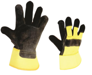 - Color: Black split leather with yellow cotton drill back and yellow canvas cuff